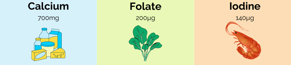 Women who are trying to get pregnant and during the first 12 months of pregnancy are recommended to take 400µg folic acid (the synthetic form of folate) to help normal development of the baby’s brain and spinal cord, and help prevent neural tube defects.